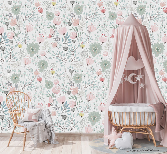 Soft Kır Çiçekleri Çocuk Odası Duvar Kağıdı