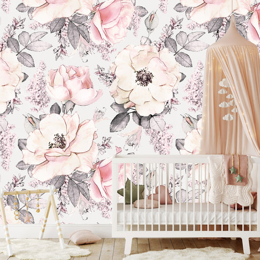 Sulu Boya Soft Çiçekler Çocuk Odası Duvar Kağıdı