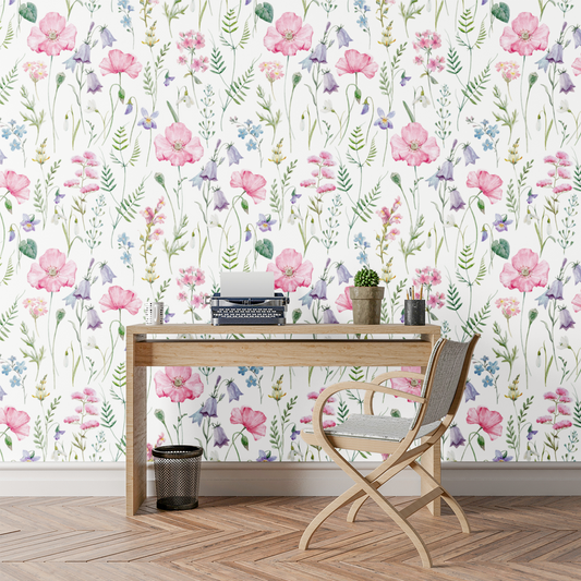 Pembe Kır Çiçekleri Çocuk Odası Duvar Kağıdı