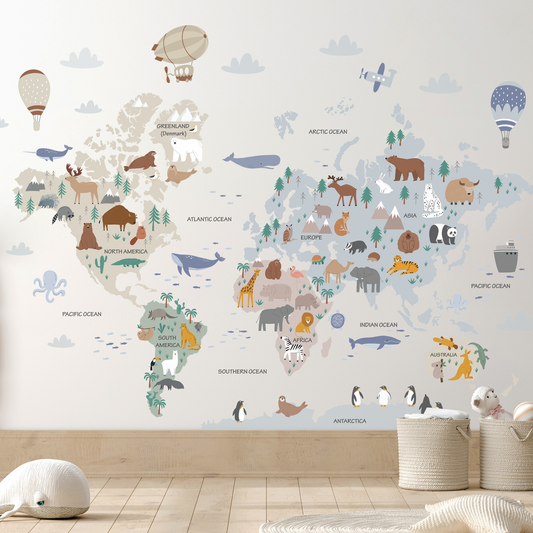 Balonlu Dünya Haritası Sticker Seti