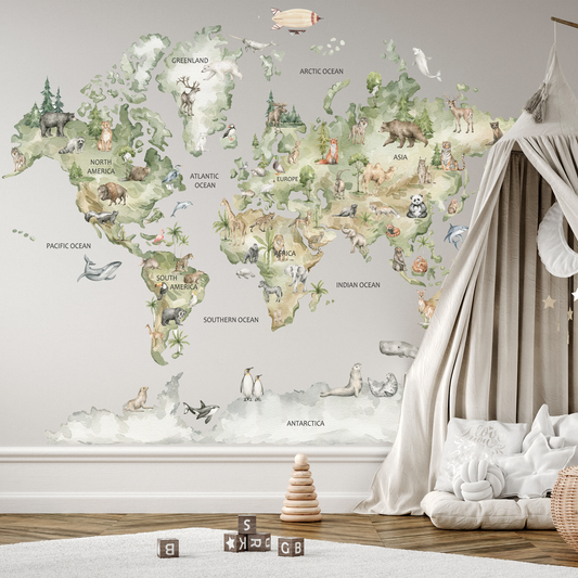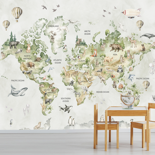 Sulu Boya Dünya Haritası Çocuk Odası Duvar Kağıdı