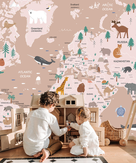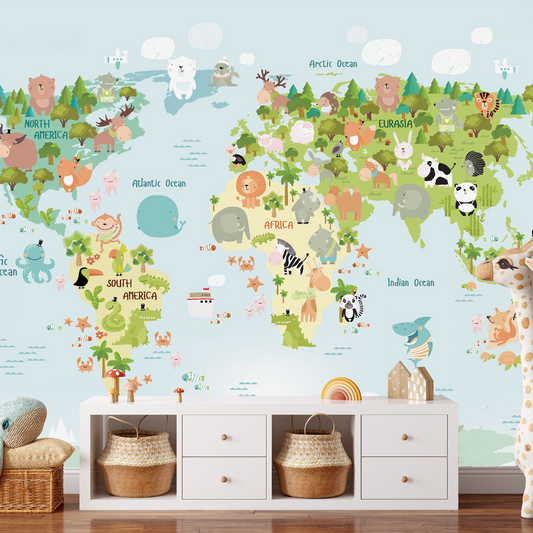 Dünya Haritası Çocuk Odası Duvar Kağıdı