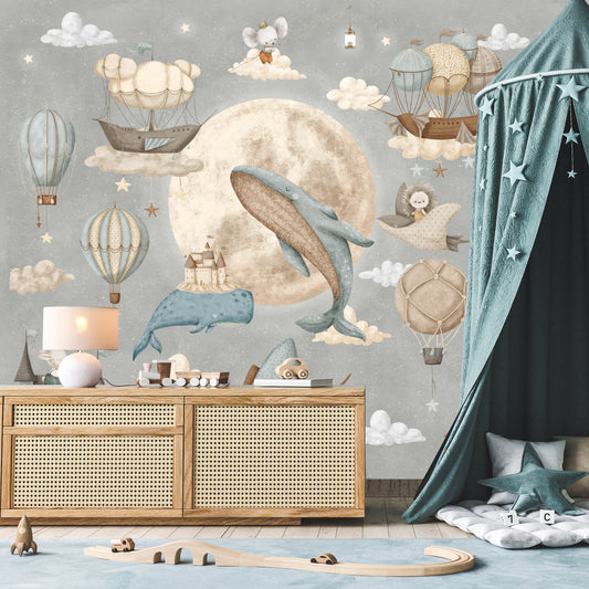 Aylı Balina Çocuk Odası Duvar Kağıdı