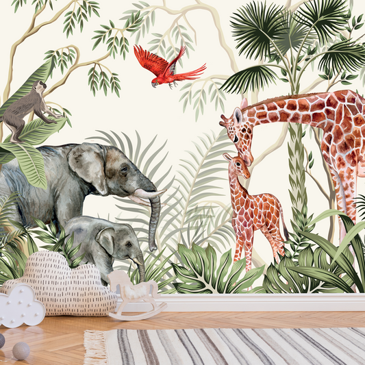 Sulu Boya Safari Çocuk Odası Duvar Kağıdı