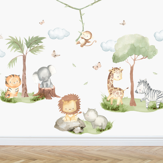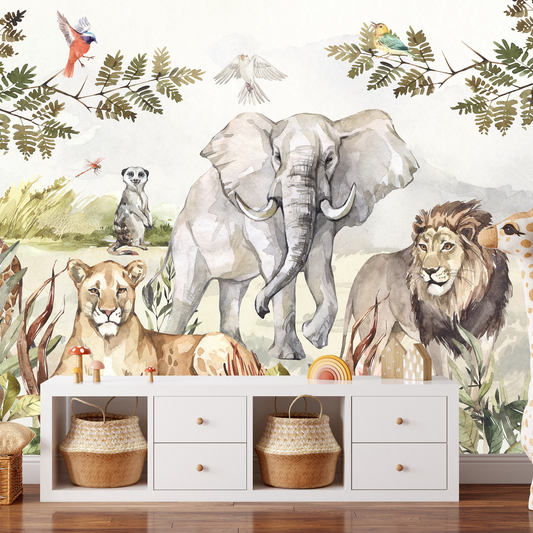 Sulu Boya Safari Çocuk Odası Duvar Kağıdı