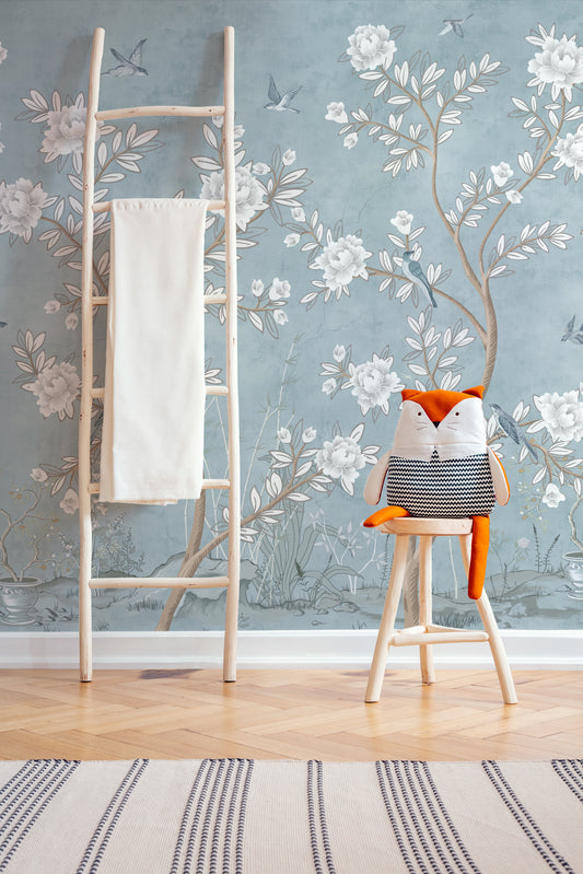 Mavi Chinoserie Çocuk Odası Duvar Kağıdı