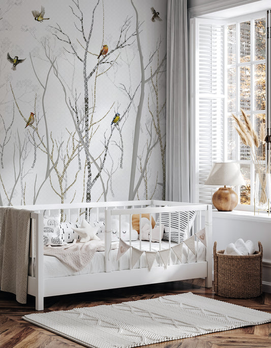 Kış Serenadı Kuşlar ve Dallar Çocuk Odası Duvar Kağıdı