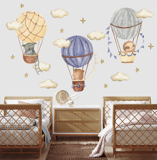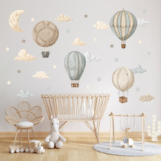 Pastel Sıcak Hava Balonları Sticker Seti